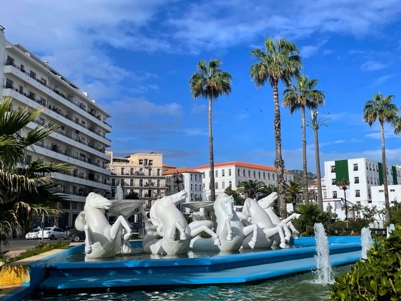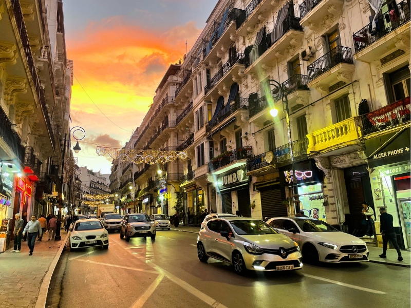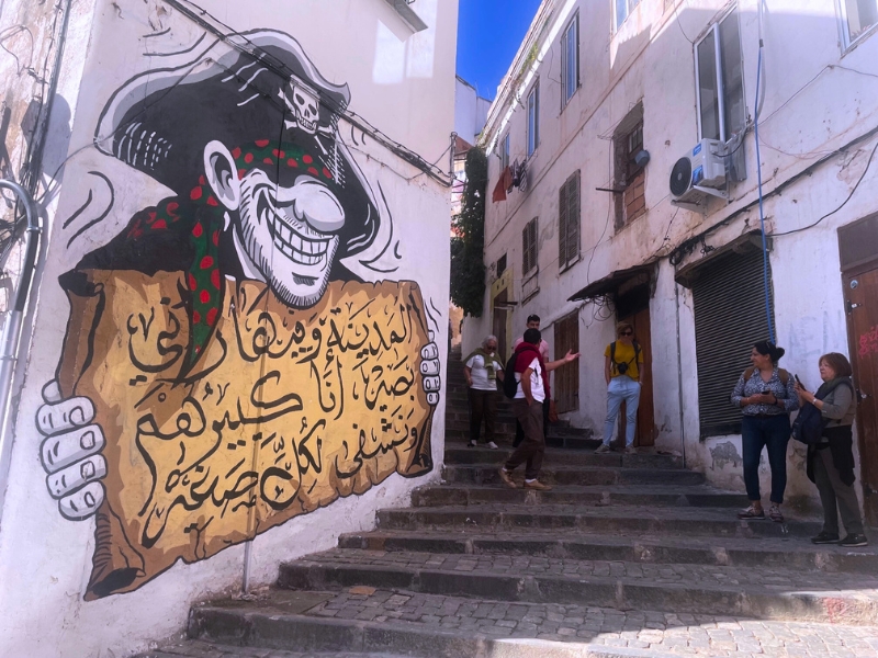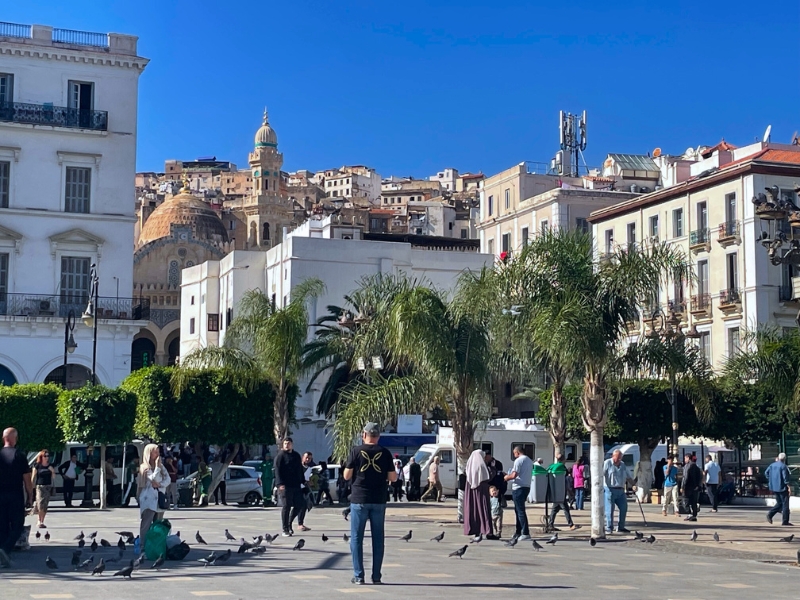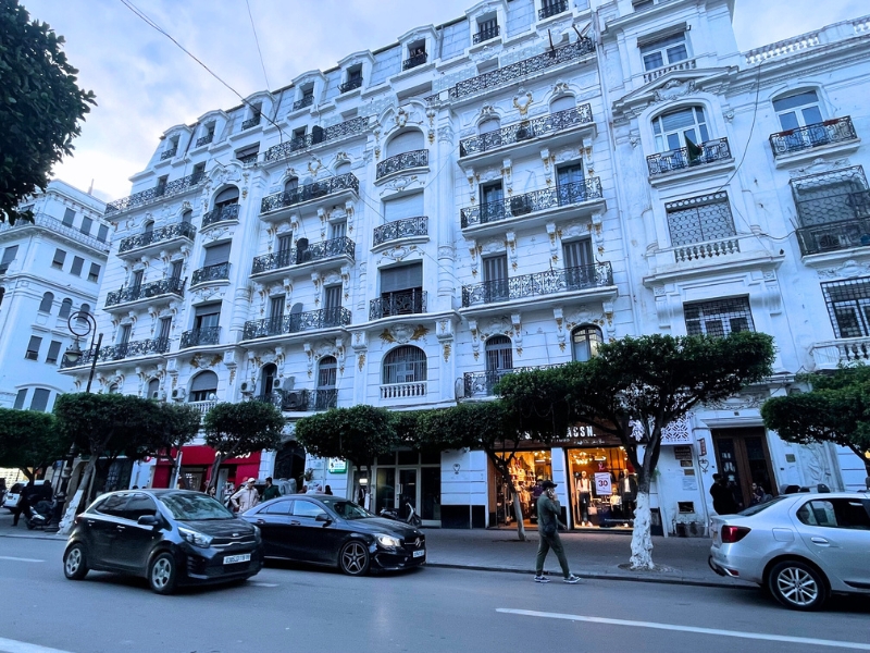 Na nákupnej ulici Didouche Mourad, čo nesie meno bojovníka za nezávislosť, zažijete niečo, čo by ste v Alžíri vôbec nečakali. Krásne budovy postavené z čias francúzskej okupácie, ktorá trvala 132 rokov vtisli mestu nadčasovú eleganciu. Butiky tu striedajú krásne kaviarne a reštaurácie. Keď ulicou budete prechádzať natrafíte tiež na námestie Slobody, ktorému dominuje biela mohutná budova Pošty, vraj najkrajšej v meste. Tu na chvíľku zastaňte a kochajte sa krásnym výhľadom na more a prístav. Pokračujte ďalej na západ, kým sa pred vami neotvorí námestie Martýrov, kde vyniká biela mešita a starý kostol Ketchaoua, prerobený na mešitu. Zvláštna stavba vyvolávajúca rôzne pocity. Na jej schodoch posedávajú muži i ženy. Keď zdvihnete hlavu uvidíte stredoveké mravenisko Casbu.