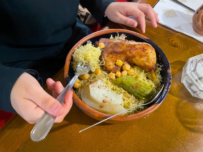 Alžírsku gastronómiu si budete chcieť vziať domov celú. Všetko tu chutí výborne a hlavne čerstvo. Kuskus je všadeprítomnou samozrejmosťou. A v tejto krajine je to s jeho chuťou asi také, ako u nás s haluškami. Všade chutí inak, tak sa nebojte ochutnať hovädzí, kurací či zeleninový. Alžírskou lahôdkou je “rechta”, pečené kura s tenkými rezancami a zeleninovou omáčkou. Pri pobreží ochutnajte grilované ryby, napríklad sardinky na alžírsky spôsob. Po Francúzoch im ostali aj chrumkavé bagety. Okrúhly teplý chlieb “chobs” im chutí ako predjedlo s olivami. Obchody s farebnými čerstvými koreninami, vábivé vône vanúce sa z pekární a cukrární vás isto zlákajú na mandľové koláčiky. Alžírsko je už viac ako 2 000 rokov známe pestovaním hrozna a olív. Kedysi sa práve odtiaľto vyvážalo najviac vína. Ochutnajte biele či červené. Domáci jedia zdravo, vo veľkom používajú olivový olej, med, džemy s rôznymi exotickými príchuťami ako pomarančový so šafranom či figový s mandľami.