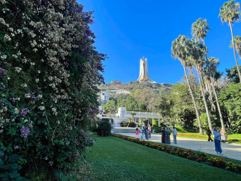 Nechajte ruch mesta žiť svojim životom a aspoň na malú chvíľu sa túlajte botanickou záhradou Hamma. Z centra sem vedie metro. Záhradu vysadili Francúzi a to hneď do dvoch rokov po dobytí Alžírska. Už pri samotnom vstupe vás očarí veľká zurčiaca fontána a vysoké palmy kráľovské. Je tu francúzska, anglická záhrada, bambusová, platanová a fikusová alej. Dokonca sa tu v roku 1947 natáčal Tarzan. Nájdete tu i strom, kde sa preháňal na lanách. Tesne nad záhradou je Múzeum výtvarného umenia s fantastickými dielami a odtiaľto vedie lanovka ku betónovému Pamätníku martýrov, ktorého stavba trvala len 7 mesiacov a bola symbolicky postavená v roku 1982, teda po 20 rokoch od získania nezávislosti. Pamätník vysoký 92 m sa hrdo týči nad mestom, odkiaľ každému dáva jasne na známosť, komu teraz tajomné Alžírsko patrí.