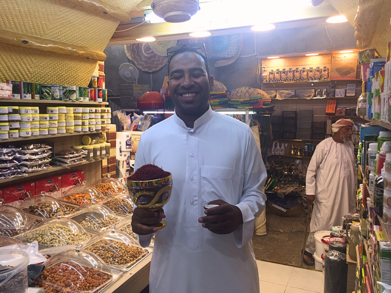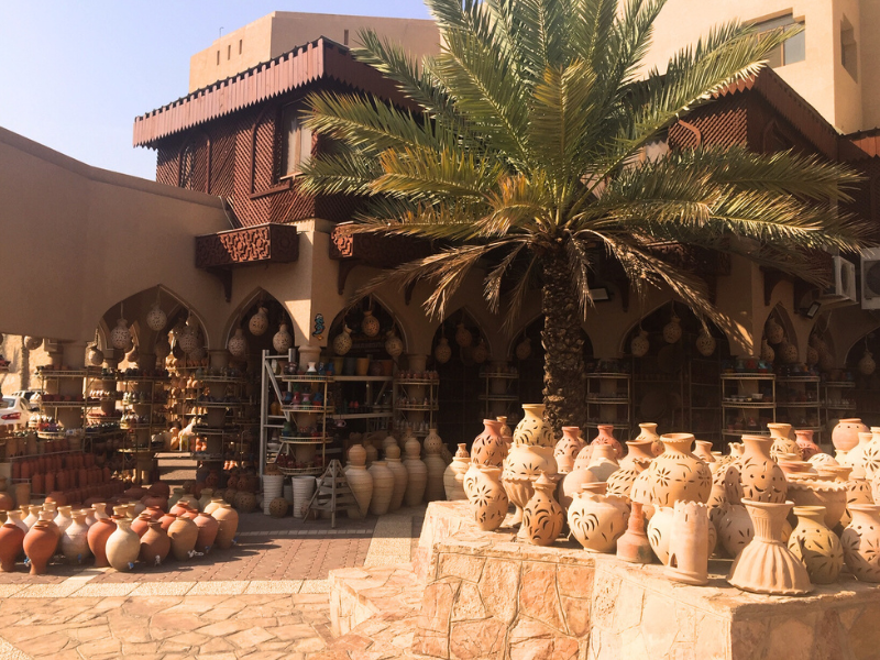 Trhovníci vo vnútrozemskom meste Nizwa ponúkajú len to najlepšie. Výborný sladký dezert 'halwa' tu môžete vyskúšať najlepšie ešte keď je teplý. S orieškami alebo s figami. Oriešky ako kešu, mandle či pistácie tu chutia úplne inak, než u nás. Ochutnajte datle rôznej vlhkosti. Najlepšie sú tie najväčšie a vydržia aj na cestu domov. Krásne je tu vypracovaná keramika alebo strieborné dýky, tzv. 'chandžár', čo je symbol Ománu. Ak navštívite trh v piatok, môžete si tu kúpiť kozu alebo dokonca i ťavu. Koza tu stojí cca 40 € a ťava od 500 € a viac.