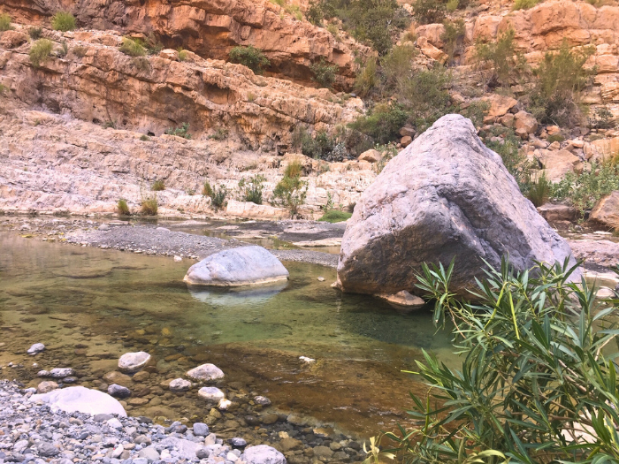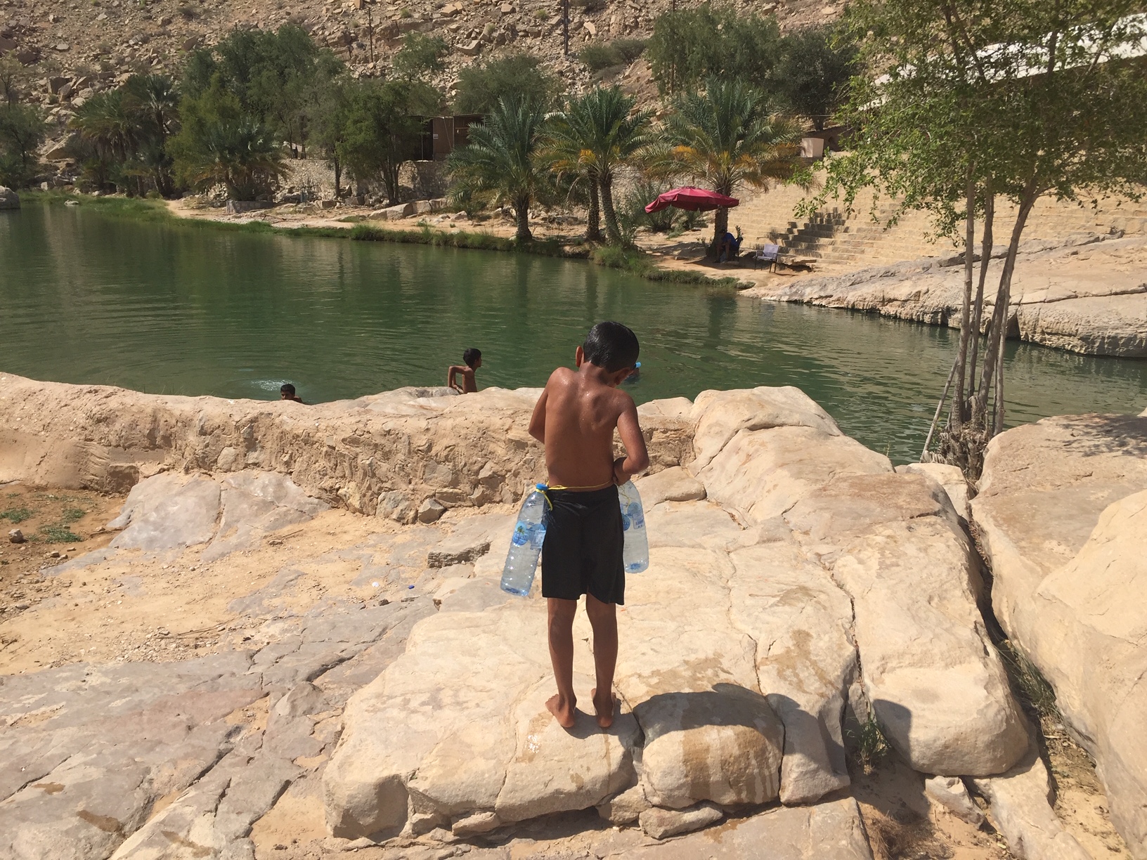 Aj keď má Omán dvetisíc km pobrežia, čo láka bielym pieskom na pláži a tyrkysovou farbou mora, predsa len kúpanie v kaňonoch je jedinečné. Sladká voda medzi skalnými masívnymi a palmy sú vítaným pokušením. Obľúbený je Wadi Khalid, ktorým vedie i 37 km dlhá túra, či Diablov závrt, ktorý je dokonalým, ba až sochárskym dielom prírody. Nachádza sa blízko mora, preto je v ňom voda sčasti sladká aj slaná. Dolu do jamy, kde je voda a dá sa plávať, vedú schody. Zostup ani výstup nie je náročný s očarí vás svieža voda krásnej farby.