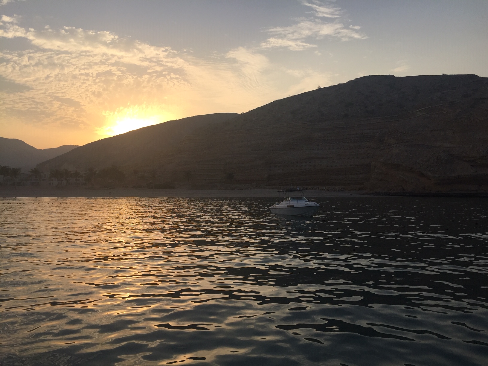 Smerom na juh od Muscatu sa ukrývajú nielen pekné zátoky, ale i pláže s jemným pieskom. Ich bieloba ostro kontrastuje s blankytným morom. Často práve tu vidieť nielen ťavy, plameniaky, volavky, ale aj rozkošné biele gazely. Príjemným spestrením poznávania ománskej prírody, je plavba loďou, počas ktorej vám skúsený kapitán, ako je napríklad Mahmoud ukáže nádherné miesta, najlepšie momenty pri západe slnka, zahrá moderné arabské piesne, ktoré i našim ušiam znejú príjemne a dokážu aj roztancovať. Ani Mahmoud nezabudol na ománske privítanie kávou a datľami.