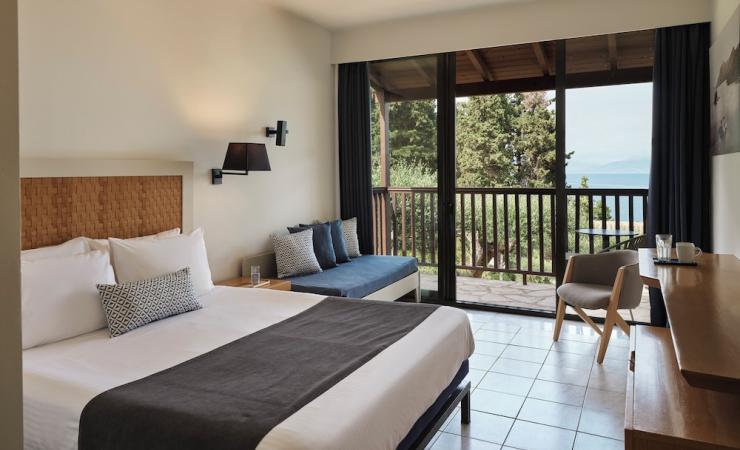 Izba v hlavnej budove s výhľadom na more (cca 21 m², 1 miestnosť, dvojlôžková izba s možnosťou 1 prístelky, max. 3 dospelé osoby) • Bungalov s výhľadom na more (cca 21 m², 1 miestnosť, dvojlôžková izba s možnosťou 1 prístelky vo forme rozkladacieho sofa, max. 3 dospelé osoby) • Superior Bungalov s výhľadom na more (cca 25 m², 1 miestnosť, modernejšie zariadená dvojlôžková izba s možnosťou 1 prístelky, max. 3 dospelé osoby) • Deluxe Bungalov s výhľadom na more (cca 37 m², 1 miestnosť, priestranná izba s King size posteľou a luxusným vybavením, max. 3 dospelé osoby) • Izba Deluxe s výhľadom na more (cca 30 m², 1 miestnosť, elegantná izba s výhľadom na more, max. 2 dospelé osoby) • Izba v hlavnej budove obsadená 1 osobou s výhľadom na more (cca 21 m², komfortné ubytovanie pre jednu osobu v hlavnej budove) • Bungalov obsadený 1 osobou s výhľadom na more (cca 21 m², ubytovanie v záhradnej časti vyhradené pre jednu osobu).