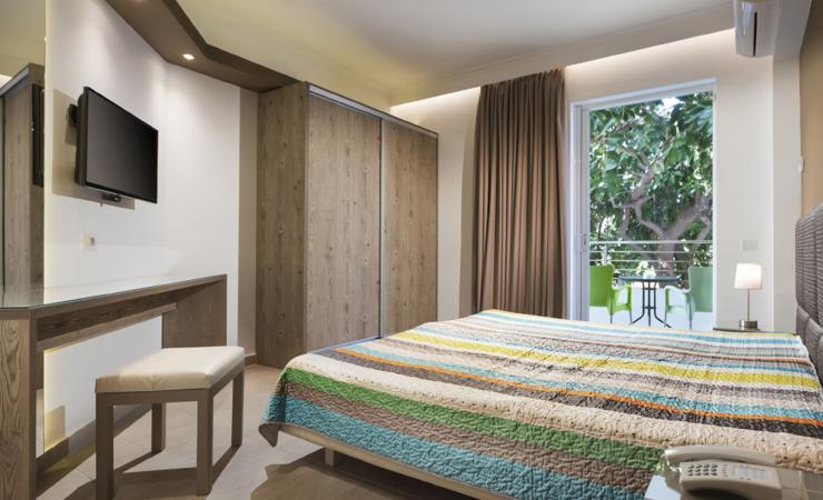klimatizácia • kúpeľňa s WC • sušič na vlasy • telefón • rádio • minichladnička • TV • wifi zdarma • balkón alebo terasa • výhľad na bazén/záhradu/okolie