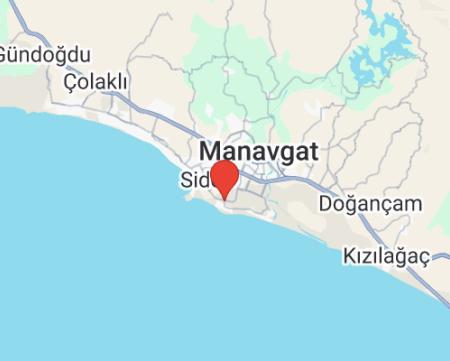 situovaný na východnom pobreží letoviska Side • 1 km od centra Side a 2 km od centra Manavgat • medzinárodné letisko v Antalya je vzdialené cca 90 min