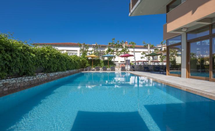 cca 250 m od centra mestečka • neďaleko prístavu • približne 1,7 km od medzinárodného letiska Alexandros Papadiamantis Skiathos • 60 m od hotela sa nachádza autobusová zastávka (môžete sa dostať autobusom na známe pláže)
