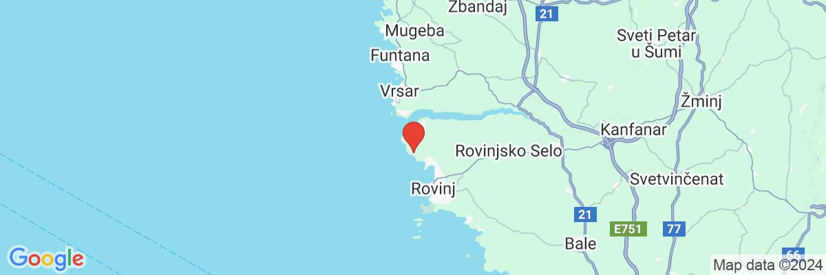 4 km severne od mesta Rovinj • priamo pri pláži • centrum mesta je dostupné miestnou dopravou alebo lodným taxíkom