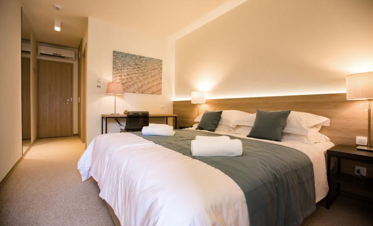 TYPY IZIEB: Izba Superior (19 m2, manželská posteľ alebo 2 oddelené lôžka, možnosť prístelky - rozkladacie lôžko pre 1 osobu, výhľad do záhrady alebo orientácia na morskú stranu alebo výhľad na more)