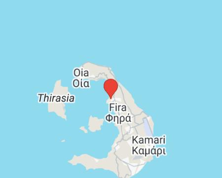 nachádza sa v malebnej dedinke Imerovigli • cca 300 metrov nad kalderou • hlavné mesto Fira vzdialené cca 2 km • medzinárodné letisko vzdialené cca 15 km