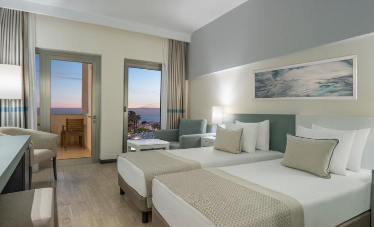 štandardné izby (24 m2, manželská posteľ alebo 2 samostatné lôžka, možnosť prístelky (rozkladací gauč), možnosť doplatku za bočný alebo priamy výhľad na more, max. 2 dospelé osoby a 1 dieťa) • štandardné izby 2+2 (24 m2, manželská posteľ alebo 2 samostatné lôžka, možnosť 2 prísteliek (rozkladací gauč), bočný výhľad na more, max. 2 dospelé osoby a 2 deti) • rodinné suity (38 m2, 2 miestnosti, manželská posteľ, dve samostatné lôžka, jacuzzi na balkóne, výhľad na more, max. obsadenie 3 dospelé osoby a 1 dieťa alebo 2 dospelé osoby a 2 deti) • 2 nové typy izieb s vyšším max. obsadením: deluxe rodinná suita (72 m2, výhľad na more, obývacia izba s kuchynským kútom, 2 spálne, 2 kúpeľne so sprchovacím kútom, manželská posteľ, dve samostatné postele, rozkladacia pohovka, max. obsadenosť 4+3) superior rodinná suita (48 m2, výhľad na more alebo bočný výhľad na more, 2 spálne s prepojovacími dverí, 2 kúpeľne so sprchovacím kútom, manželská poste, dve samostatné postele, rozkladací gauč, max. obsadenosť 4+1)