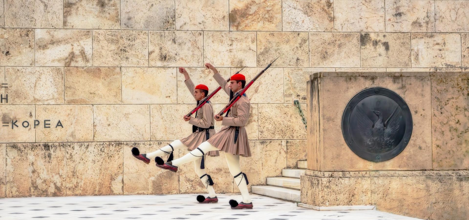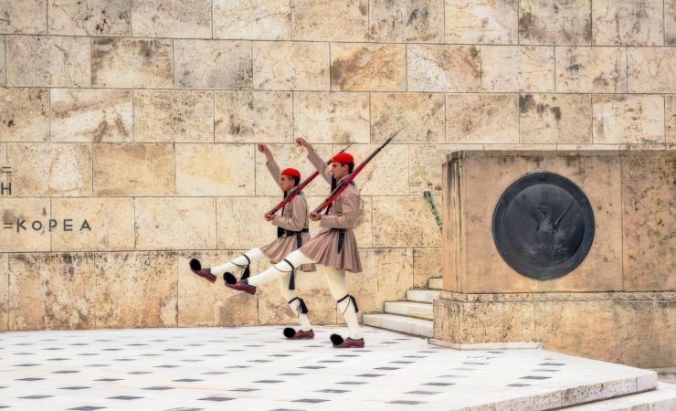 Vojaci pred budovou Aténskeho parlamentu na námestí Syntagma, Grécko. Foto: unsplash.com