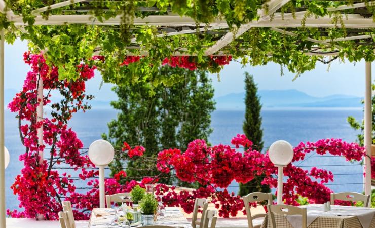 Večera podávaná formou bufetu (v hlavnej sezóne) alebo výberom z menu (A la Carte), zameraná na grécku a medzinárodnú kuchyňu