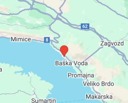priamo pod hotelom jemno štrková pláž • oddelená skalami na menšie časti • lemovaná borovicami a píniami poskytujúcimi tieň • tiahne sa až po okraj mestečka Brela • ležadlá a slnečníky za poplatok • vodné športy a atrakcie • požičovňa športových potrieb • plážové bary a reštaurácie
