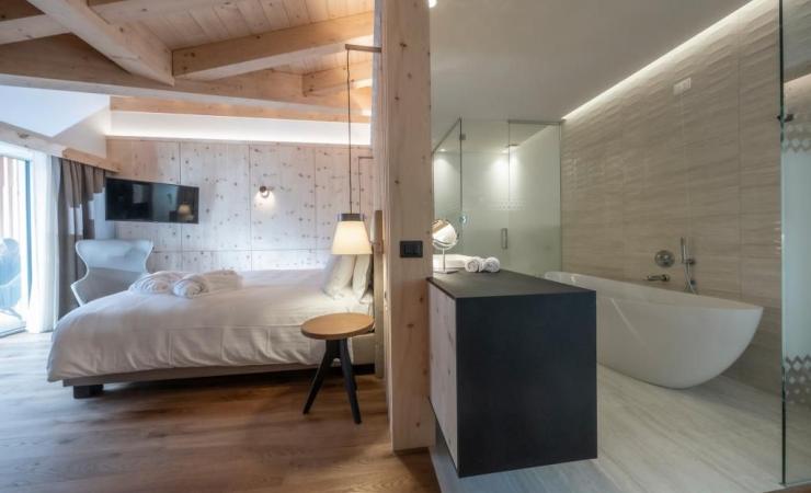 Monzoni deluxe double/triple room • Junior Suite Roda di Vael • Triple room deluxe, balcony or terrace  • Junior Suite balcony or terrace • Double room deluxe • Junior Suite deluxe • Junior Suite mountain view