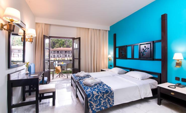 Štandardná izba (28 m² • útulná izba s tradičnými prvkami • max. 2 osoby) • Superior izba  (32 m² • priestrannejšia izba s možnosťou prístelky pre dieťa alebo dospelú osobu • max. 3 dospelé osoby alebo 2 dospelí a 2 deti) • Izba Komfort (cca 28 – 30 m² • situovaná v tichšej časti rezortu • zameraná na vyššie pohodlie • max. 3 dospelé osoby) • Rodinná izba (cca 28 m² • tradičný dizajn s mníšskymi prvkami • ideálna pre rodiny • max. 3 dospelé osoby a 1 dieťa) • Rodinná izba s poschodovou posteľou (cca 28 m² • vybavená manželskou posteľou a poschodovou posteľou pre dve deti • max. 2 dospelé osoby a 2 deti) • Izba Elegance (cca 28 m² • štýlovo zariadená s dôrazom na estetiku a moderné textílie • max. 3 osoby) • Suite s 1 izbou (cca 45 – 50 m² • komfortné ubytovanie s oddelenou spálňou a obývacou časťou • župany a papuče v cene • max. 4 osoby) • Rodinná Suite s 2 izbami (cca 55 – 60 m² • dve samostatné spálne a obývacia časť • dve kúpeľne • ideálne pre veľké rodiny • max. 5 osôb) • Suite s 2 izbami (cca 55 m² • priestranné suity s dôrazom na súkromie a oddelené spálne • max. 5 osôb) • Suite Premium s 2 izbami (cca 60 m² • luxusne renovované suity s moderným vybavením a nadštandardným priestorom • max. 5 osôb) • 2 Bedroom Suite (SeaView) (cca 60 m² • exkluzívna suita s priamym výhľadom na more • dve spálne a obývacia časť • max. 5 osôb) • Izba Klasik (cca 25 m² • pôvodný autentický štýl hotela s použitím kameňa a dreva • max. 2 dospelé osoby).