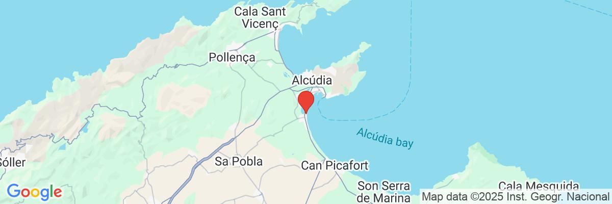 v severnej časti ostrova • od prístavu Alcudia s nákupnými možnosťami, reštauráciami a barmi cca 500 m • historické centrum strediska Alcudia cca 5 km • letisko Palma de Mallorca cca 60 km