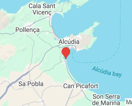 v severnej časti ostrova • od prístavu Alcudia s nákupnými možnosťami, reštauráciami a barmi cca 500 m • historické centrum strediska Alcudia cca 5 km • letisko Palma de Mallorca cca 60 km