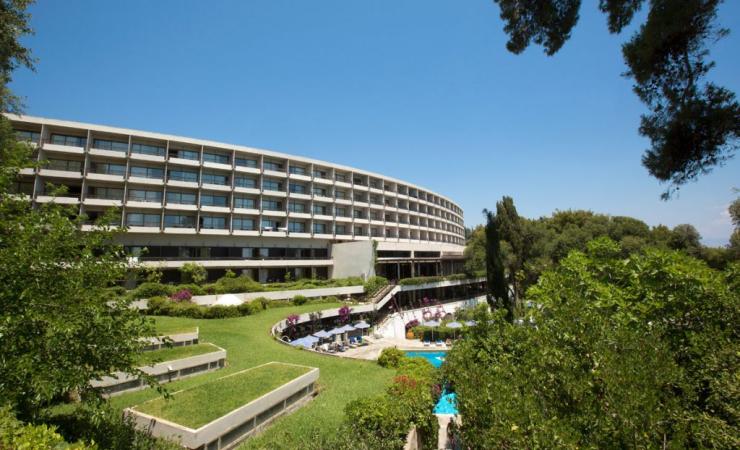Corfu Holiday Palace je ikonický 5-hviezdičkový rezort situovaný na exkluzívnom mieste polostrova Kanoni. Nachádza sa v objatí sviežej prírody plnej borovíc, cyprusov a kvitnúcich záhrad, ktoré sa zvažujú až k súkromnej pláži. Hotel spája svet luxusu s bohatou históriou ostrova a ponúka prvotriedne služby, moderné vybavenie a nezameniteľnú atmosféru gréckej pohostinnosti. Vďaka svojej polohe v blízkosti historického centra mesta Korfu a zároveň v tichej oáze zelene je ideálnym miestom pre náročných cestovateľov, páry aj rodiny s deťmi.