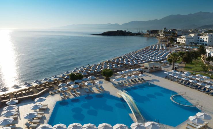 676 izieb, suít a privátnych víl • dve hlavné budovy a jednoposchodové bungalovy • vstupná hala s recepciou • obchodná pasáž • kaderníctvo • internetový kútik a Wi-Fi (zdarma) • hlavná reštaurácia - Enomy • tematické reštaurácie: Mademi - BBQ reštaurácia s výhľadom na more, Alatsi - reštaurácia s morskými plodmi, Platia – grécka reštaurácia, Pithos – tradičná krétska taverna, Estia – miestna, stredomorská kuchyňa, Arismari - miestna stredomorská kuchyňa, pri hlavnom bazéne • snack point • 9 barov • 6 vonkajších bazénov, 5 detských bazénov, 1 vnútorný a 1 vonkajší vyhrievaný bazén • 1 vonkajší bazén, 3 vonkajšie vyhrievané bazény a 1 vonkajšia vyhrievaná vírivka, k dispozícii pre hostí ubytovaných v exkluzívnych izbách pre dospelých • ležadlá a slnečníky (zdarma) • wellness centrum - hamman, masáže, hydroterapia (za poplatok) • vnútorný bazén • fitnes • tenis • minigolf • stolný tenis • minifutbal • vodné pólo • biliard (za poplatok) • šípky • boccia • disco • amfiteáter • športové turnaje • tanec • varenie • karaoke • hodiny varenia • denné a večerné animačné programy • Nami - vínna pivnica (za poplatok) • vonkajšie kino (1 vstupenka zdarma poča pobytu)