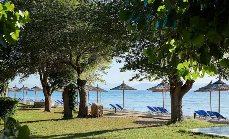 súkromná piesočnato-kamienková pláž s pozvoľným vstupom do mora sa nachádza priamo pri hotelových záhradách • plážový servis: slnečníky a ležadlá sú hosťom k dispozícii (v závislosti od typu pobytového balíka) • pláž je ocenená Modrou vlajkou za čistotu a kvalitu služieb