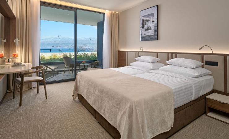 Superior izba 2 (dvojlôžková izba, balkón, výhľad na more) • Superior izba 2+2 (dvojlôžková izba, možnosť 2 prísteliek, balkón, výhľad na more) • Premium izba 2+2 (dvojlôžková izba s gaučom, možnosť 2 prísteliek, balkón, výhľad na more) • Superior rodinná izba (dve prepojené dvojlôžkové izby, možnosť 2 prísteliek, balkón, výhľad na more)