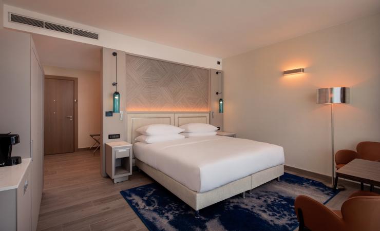 Dvojlôžková izba (balkón, výhľad na more) 30 m² • Dvojlôžková izba Deluxe (balkón, výhľad na more) 30 m², izby sa nachádzajú na vyššom poschodí • Suita 2+2 (balkón / terasa, výhľad more) 60 m², nachádza sa vo vilovej budove, samostatná obývacia izba s dvojlôžkom, dvojlôžková spálňa • Suita 2+2 deluxe (balkón / terasa, výhľad more) 69 m², nachádza sa vo vilovej budove, samostatná obývacia izba s dvojlôžkom, dvojlôžková spálňa