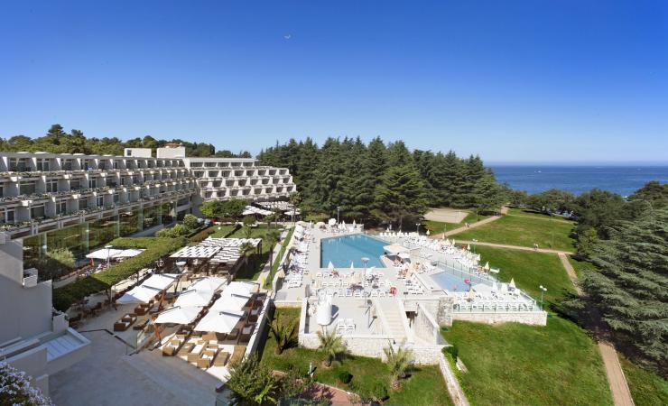 v stredisku Plava Laguna • priamo na plážovej promenáde • historické centrum mesta Poreč vzdialené 2 km - dostupné turistickým vláčikom alebo loďkou • nový aquapark „Aquacolors“ cca 5 km • cca 60 km od medzinárodného letiska v Pule