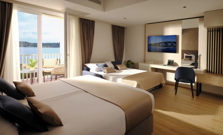 Jednolôžková izba (15 – 19 m², výhľad na krajinu, mini chladnička, trezor) • Štandardná izba (18 – 20 m², bez balkóna, izba s balkónom za doplatok, výhľad na krajinu, výhľad na more za doplatok, mini chladnička, trezor) • Rodinná izba s balkónom (19 – 30 m², pre max. 4 osoby, pristelka je formou rozkladacej pohovky, výhľad na krajinu, za doplatok výhľad na more, mini chladnička, trezor)