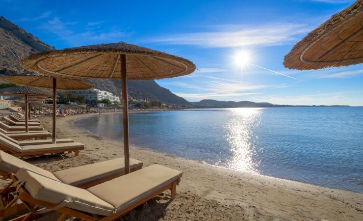 piesočnato-kamienková pláž • pozvoľný vstup do mora • pri hoteli • ležadlá a slnečníky pri bazéne v tesnej blízkosti pláže (zdarma) a na pláži (za poplatok) • plážové uteráky (za poplatok) • plážový bar (za poplatok)
