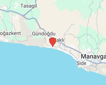 nachádza sa v obľúbenej oblasti Side - Colakli • približne 55 km od letiska v Antalyi • cca 10 km do historického centra Side • cca 15 km od mesta Manavgat (autobus chodí približne každých 30min, za poplatok) • cca 75 km od mesta Alanya • cca 65 km od mesta Antalya