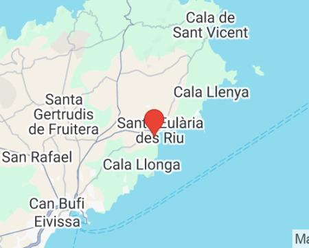 na plážovej promenáde na okraji mesta • letisko cca 21 km • pláž cca 150 m • promenáda cca 300 m • centrum mesta Ibiza cca 15 km • centrum mesta Santa Eulalia cca 600 m • golfové ihrisko cca 6 km
