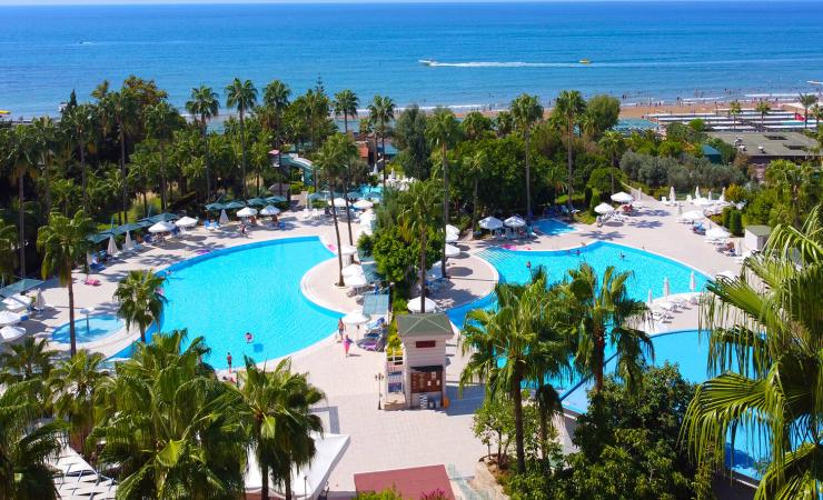 hlavná a vedľajšia budova • 259 izieb • hlavná reštaurácia • WiFi (zdarma) • 3 a la carte reštaurácie (nutná rezervácia, dve - Akdeniz a Mexican v rámci all inclusive, Steak house je za extra poplatok) • bary • disco • sauna • turecké kúpele • hlavný bazén • bazén so šmykľavkami • detský bazén • fitness centrum • basketbal • šípky • vodný aerobik • stolný tenis • plážový volejbal • aquagym • denné a večerné animácie • konferenčná miestnosť