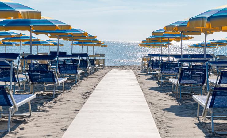 cca 50m od pláže • piesočnatá pláž • pozvoľný vstup do mora • 1 slnečník a 2 ležadlá od 4. rady + plážový uterák (zahrnuté v cene) • v blízkosti promenády s reštauráciami