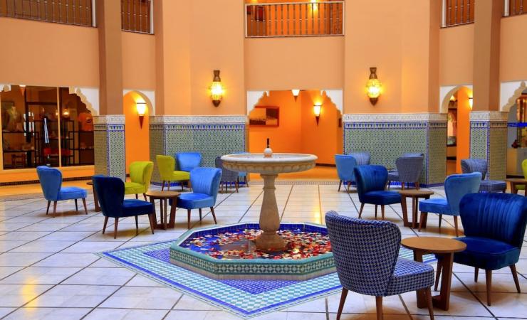 lobby • recepcia 24 hod • 3 reštaurácie (bufetová Al Boustane, a´la carte Zerhoun, bistro Majorelle) • 3 bary (piano bar, snack bar, lounge bar) • bankomat • obchody • kaderníctvo • konferenčná miestnosť • diskotéka • služby práčovne • záhrada • 2 bazény • akvapark