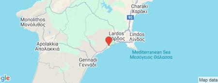 hlavné mesto Rodos cca 57 km • 6 km od mestečka Kiotari • 14 km od historického mestečka Lindos • cca 5 km od centra strediska Lardos, kde nájdete obchodíky s tavernami
