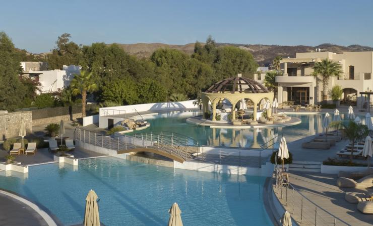 Aulūs Lindos Rhodes, Curio Collection by Hilton je 5-hviezdičkový ultra All-Inclusive rezort situovaný v pokojnej časti ostrova Rodos, priamo pri pláži Lardos. Resort patrí do známej siete Domes Resorts a je navrhnutý tak, aby poskytoval bezstarostnú a pohodovú dovolenku pre rodiny aj páry, kde je väčšina služieb a zážitkov už zahrnutá v cene pobytu. Hotel kombinuje moderný dizajn, teplo a pohodlie gréckeho ostrova a vytvára inkluzívne prostredie rezortu, kde rodiny zažívajú Rodos s ľahkosťou a štýlom.