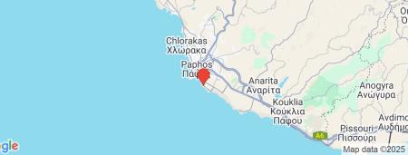 priamo pri pobreží, s krásnym výhľadom na Stredozemné more • cca 1,5 km od centra Paphosu • 2 km od prístavu s historickým hradom • v blízkosti sú obchody, reštaurácie a bary • letisko Paphos je vzdialené asi 12 km
