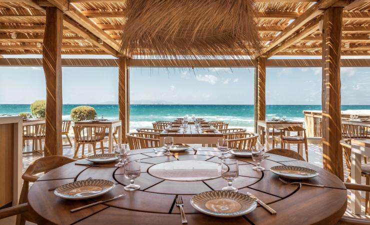 Hlavná reštaurácia (24-hodinový all inclusive servis ) • Taverna à la carte (raňajky 8:00-11:00, obed 12:30-14:30 a večera 18:30- 22:00) • Italian à la carte (brunch 9:00-12:00, večera 18:30-22:00) • Steak House à la carte (18:30- 22:00) • Pan-Asian à la carte (18:30-22:00) • Italian pizza s ukážkami varenia (10:30-18:00) • Beach BBQ (12:00-16:00) • Creperie - Gelateria (8:30-00:30) • Café Rinela (17:00-01:00) • Lounge Bar (09:00-02:00) • Pool bar (09:00-00:00) • Theatre bar (10:00-01:00) • Wine bar (18:00-01:00) • Secret bar (10:00-18:00) • Beach bar (10:00-01:00) • Karpourzi bar (11:00-12:00, 15:00-16:00)