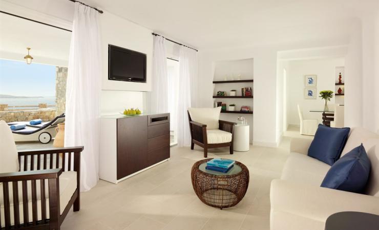 Typy izieb Premium Garden View Room (38 m2, 2-3 osoby, s výhľadom do záhrady, so zdieľaným bazénom za poplatok) • Premium Sea View Room (33 m2, 2-3 osoby, s výhľadom na more, možnosť jacuzzi za príplatok) • Suite with Private Pool (75 m2, 2 až 4 osoby, 2 kúpeňe, terasa 45 - 65 m2, súkromný bazén 20 m2, ležadlá na opaľovanie, výhľad na more) • Grand Suite with Private Pool (110 m2, 2 až 4 osoby, terasa 95 m2, súkromný bazén 25 m2, ležadlá na opaľovanie, výhľad na more)