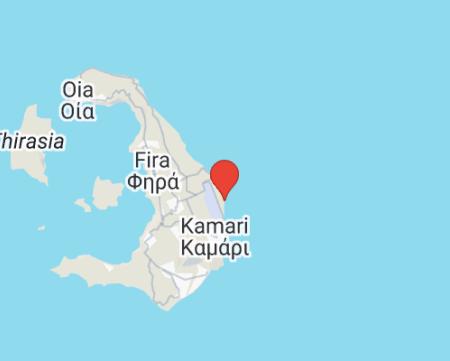 priamo na čiernej vulkanickej pláži v stredisku Kamari • 6 km do starej Théry • 8 km do hlavného mesta Fira • medzinárodné letisko cca 10 minút