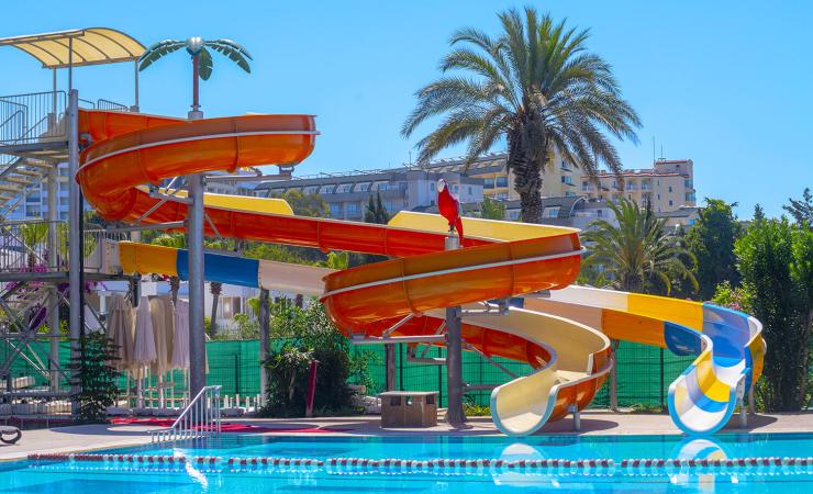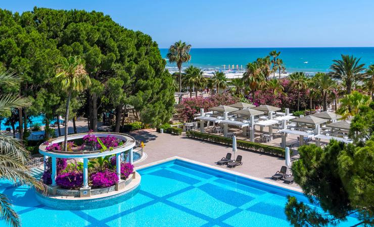 vstupná hala s recepciou • Wi-Fi (zdarma) • lobby bar • reštaurácia s terasou • 2 a la carte reštaurácie • viacero barov • obchody • dva bazény - jeden bazén s tobogánmi • turecké kúpele • sauna • parný kúpeľ • fitnes • tenis • za poplatok: wellness centrum s rôznymi typmi východoázijských masáží • biliard • internet • bowling • stolný futbal