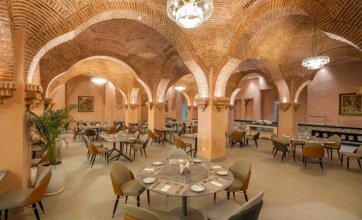 Bohaté raňajky, obedy a večere podávané formou bufetu v hlavnej reštaurácii • neskoré kontinentálne raňajky pre neskôr vstávajúcich • počas dňa ľahké občerstvenie, snacky a káva v baroch pri bazéne a na pláži • vybrané lokálne alkoholické a nealkoholické nápoje v čase od 10:00 do 23:00 • tématické večere zamerané na marockú a medzinárodnú kuchyňu • v reštauráciách sa pri večeri vyžaduje formálne oblečenie.