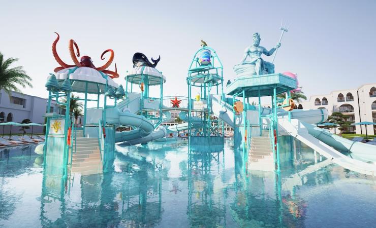 Bazény tri veľké vonkajšie bazény so sladkou vodou (jeden v zime vyhrievaný) • detský splash park s 8 vodnými šmykľavkami a vodnými hrami • vnútorný vyhrievaný bazén v rámci spa centra (zdarma v určitých hodinách alebo pri procedúrach) • slnečná terasa s ležadlami, slnečníkmi a balijskými posteľami.