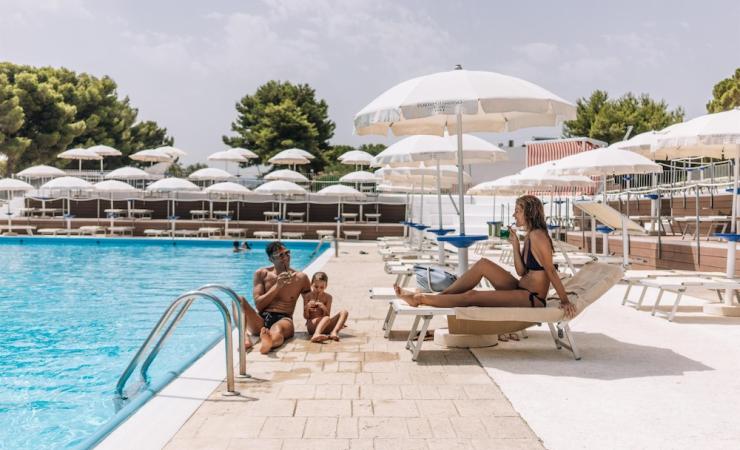 recepcia • hlavná reštaurácia • 3 tematické reštaurácie (Il Pugliese, l’Aranceto, Il Vegano – nutná rezervácia) • bary • 3 vonkajšie bazény (vrátane detského) • slnečná terasa s ležadlami a slnečníkmi • Wi-Fi v spoločných priestoroch • amfiteáter • parkovisko (zdarma, podľa dostupnosti) • wellness centrum (za poplatok).