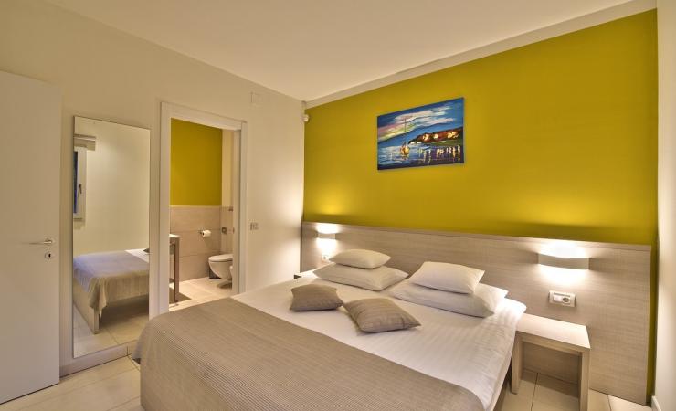 Štandardná izba (30 m², pre max. 2 osoby, balkón alebo terasa, morská strana) • Izba Superior (30 m², pre max. 3 osoby, prístelka formou rozkladacej pohovky, balkón alebo terasa, morská strana za doplatok) • Rodinná izba (30 – 38 m², pre max. 3 osoby, morská strana, prístelka je formou pevného lôžka)