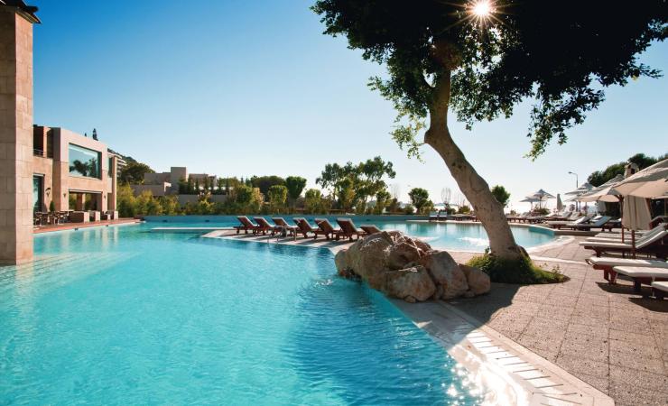 Luxusný Amus Hotel & Spa je situovaný na západnej časti ostrova Rodos medzi strediskami Ixioa a Ialyssos, iba 4 km od mesta Rhodos. Poskytuje nádherný výhľad na záliv Ixia. Ponúka bohaté možnosti rekreačných aktivít, kvalitné a špičkové wellnes a spa služby vhodné pre náročných klientov a rovnako aj výnimočnú kuchyňu a gastro služhy.