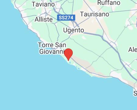 Marina di Ugento • priamo na pláži • uprostred chráneného borovicového lesa o na pláži • letisko Brindisi cca 120 km • letisko Bari cca 200 km • centrum mesta Torre San Giovanni 4 km • barokové mesto Lecce 65 km