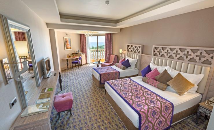 hotel pozostávajúci z hlavnej 6 poschodovej budovy • 579 izieb • hlavná reštaurácia • 5 á la carte reštaurácií (za poplatok) • Wi-Fi zdarma • internetový kútik (za poplatok) • niekoľko barov • obchody • vonkajšie bazény aj so šmýkačkami • detský bazén • aquapark • zábavný park pre deti aj dospelých • wellness za poplatok • turecké kúpele a sauna • fitnes • ranná gymnastika • tanečné kurzy • step aerobik • plážový volejbal • stolný tenis • boccia • šípky • vodné športy (bazén) • vodná gymnastika • vodné pólo • BBP gym • animácie počas dňa aj večera • profesionálne večerné shows • živá hudba • disco