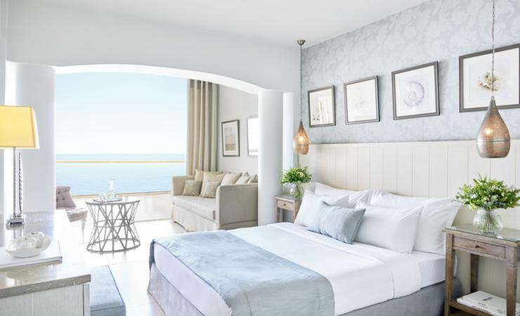 Double Room (25 m2, pre 2 osoby, výhľad do záhrady alebo na more) • Family Room (50 m2, pre 2-4 osoby, výhľad do záhrady alebo na more) • Junior Suite (35 m2, pre 2-3 osoby, výhľad do záhrady alebo na more) • Junior Suite Panorama (40 m2, pre 2-4 osoby, výhľad na more) • One Bedroom Family Suite (50 m2, pre 2-5 osôb, výhľad na more) • Two Bedroom Family Suite (75 m2, pre 2-5 osôb, výhľad na more) • Deluxe One Bedroom Family Suite (80 m2, pre 2-5 osôb, výhľad na more) • Deluxe Two Bedroom Family Suite (105 m2, pre 2-6 osôb, výhľad na more)