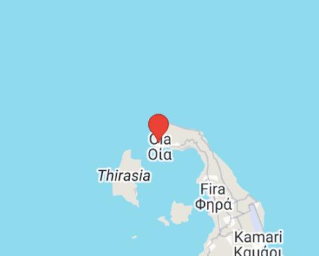 v severozápadnej časti ostrova • asi 350 mod centra malebnej dedinky Oia • vo svahus krásnym výhľadom na more a na západ slnka •letisko Thira vzdialené asi 25 min